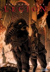 Llueve sangre sobre la ciudad de Buenos Aires. El cielo se abre para vomitar demonios. Son la Legión; son la muerte y la destrucción; ¿Por qué vinieron? ¿Qué quieren? ¿Para qué recolectan los restos de sus víctimas? Nadie lo sabe. Sólo Félix, el guitarrista de una banda de barrio, tiene la clave para averiguarlo. "Legión es un cómic de terror escrito y dibujado por Salvador Sanz, dueño de una imaginación desbordante y de una capacidad única de llevar al papel imágenes que se incrustan en la memoria de los lectores como meteoritos en llamas. Quienes lo conozcan por sus trabajos anteriores –fue uno de los pilares de la ya mítica revista Catzole y más recientemente ha colaborado con la revista Bastión Unlimited- tienen aquí una oportunidad de volver a disfrutar de su talento, quienes no lo conozcan van a descubrir un autor con un mundo interior personalísimo, extraño y fascinante." |