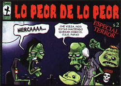 "Hola pepes, por fin pude sacar el tan esperado (esperado por mi) 'Especial Terror' y fue este número el ke me decidió a sacar la revista a todo color. Me gusta demasiado el género komo para sakarlo en blanco y negro. También agrandé el formato, para mejorar la revis y para ke no me puteen los de la imprenta. Este especial trae el humor de siempre, galerías del terror (con personajes de pelis, literatura y de la vida real) y además muchísimas ganas de dibujar." El Bruno |