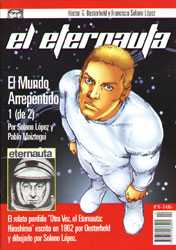 Recopilación de los dos números de la revista El Eternauta en que se reedito El Mundo Arrepentido, secuela de El Eternauta con dibujo de Solano López y guión de Pablo Maiztegui. La historieta fue publicada a partir junio de 1997 por la revista Nueva, distribuida junto con diarios del interior del país; luego fue recopilada en libro. Originalmente en color, esta reedición es en blanco y negro. El Mundo Arrepentido narra una aventura en otro planeta, en el continuum espacio-temporal por el que viaja el personaje. |